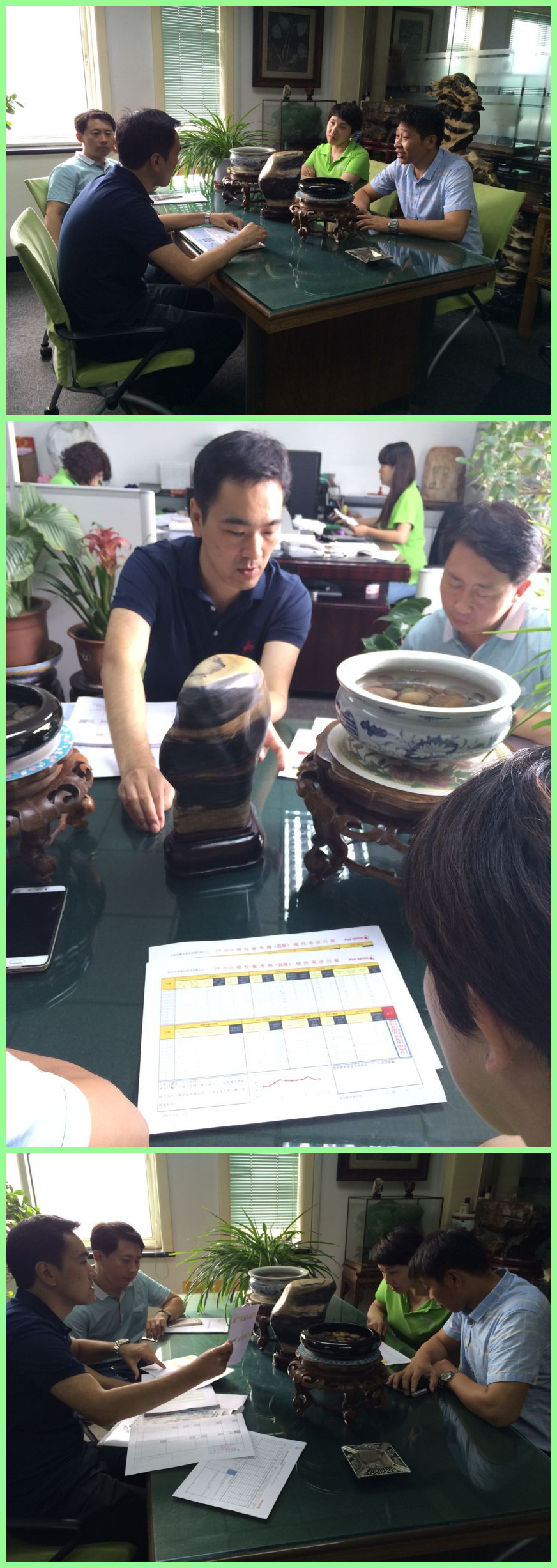 炎炎夏日,施樂公司人員來到秦皇島優印工坊總部,給我們做售后回訪,大家一起對各項指標做分析與探討。